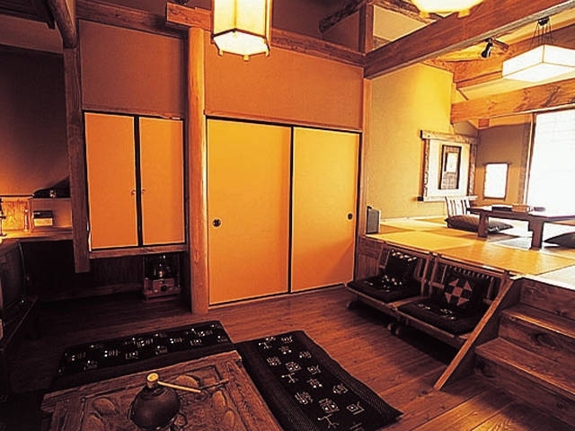 古木を柱に、杉皮葺きの屋根をつけた露天風呂で日帰り入浴ができる。雑木林に囲まれた敷地内には囲炉裏を設けた茅葺き屋根の休憩所やあずまやがあり、木々が彩る季節を感じながらひと休みできる。