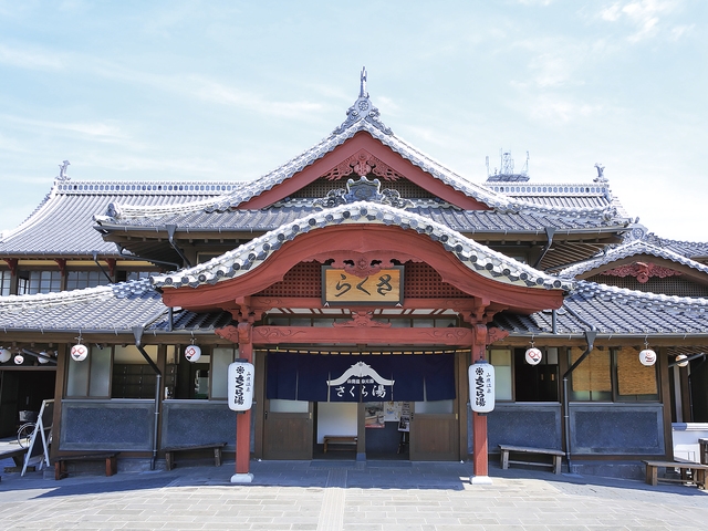 細川藩主が築いた御茶屋(藩主や役人の休息・宿泊施設)として記録が残る威風堂々とした木造温泉。唐破風のある玄関など、江戸期の建築様式を残す大浴場で、歴史ある湯を楽しみたい。