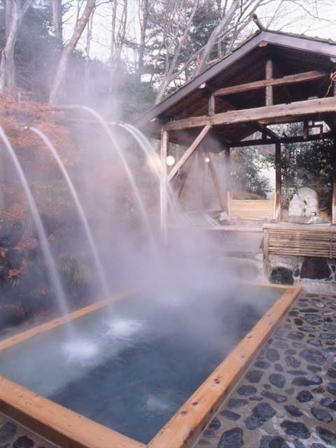 四季折々の自然を満喫しながら、雨でも入浴可能な全天候型露天風呂や綱の湯(立ち湯最深140cm)は板室温泉の伝統的入浴法がおすすめ。風呂は全部で6種類あり、男女3種類ずつ日替わりで楽しめる。湯上がりは大広間でゆっくりくつろぎたい。