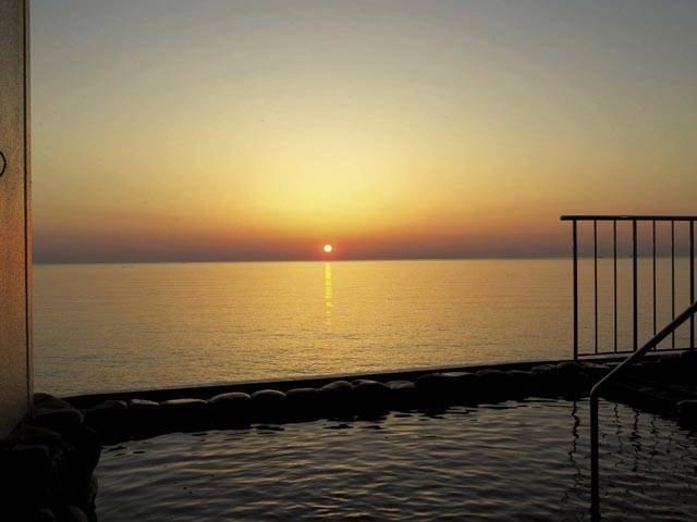 まるで日本海で湯浴み、絶好のロケーションを楽しむ