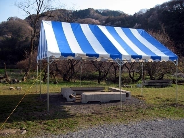 - 鉄板・網各500円、ワンタッチタープテント1500円