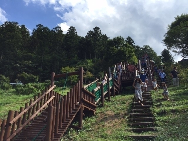 絶景のバーベキューを楽しんだら、木製遊具で遊ぼう