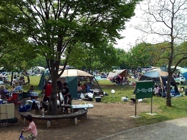 荒川の調節池「彩湖」に面して整備された広大な都市公園。芝生が美しいバーベキュー広場は、約1000人収容できるほど広大で、手持ちのコンロや食材等を持ち込めば予約不要、無料で利用できる。炊事場がないので洗い物は各家庭で処理し、ゴミの持ち帰りなどの利用マナーを守って楽しもう。また、気軽に手ぶらでバーベキューを楽しみたい場合は、中心広場の「BBQガーデン」を事前に予約して利用するのがおすすめ。