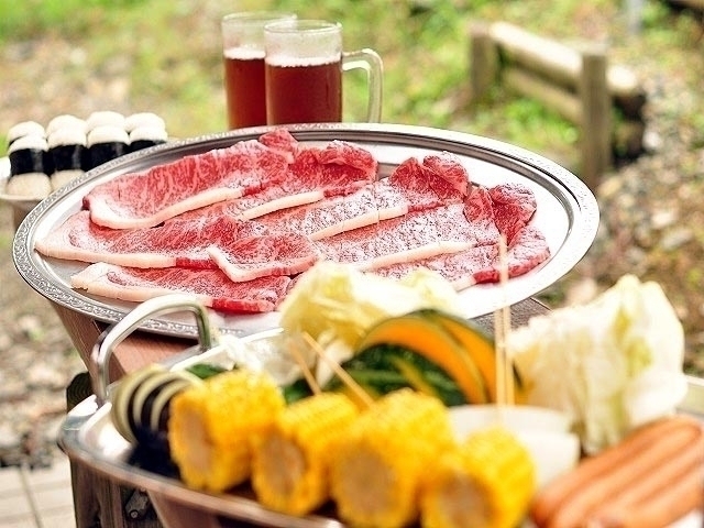 標高550mの高原に70haの広大な敷地を持つアウトドア施設。バーベキューは屋根付きバーベキューサイト「バーベキューの館」で行うことができる。バーベキューサイトには備え付けのコンロがあり、食材セットと組み合わせれば手ぶらでバーベキューも可能だ。ただし食材持ち込みと食材セットの併用はできないので注意。