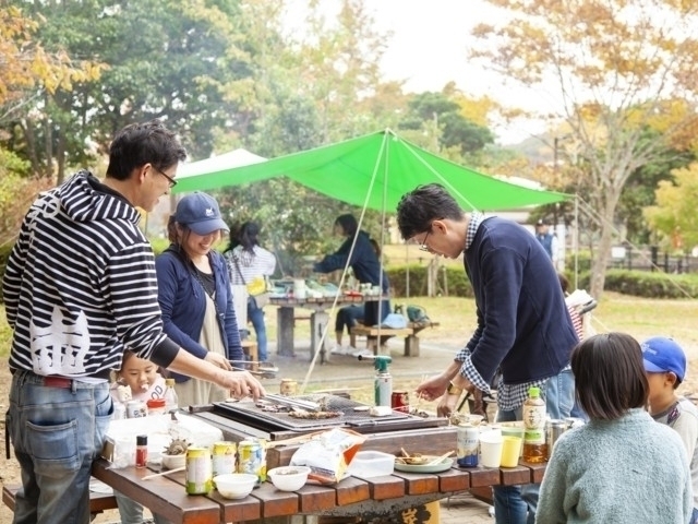 神戸市の中心から車で25分という便利さで、里山の雰囲気が味わえる自然豊かな公園。デイキャンプ場では炭、薪を使ってのバーベキューを楽しめる。食材の持ち込みは自由だが、炊事用具、食器、燃料は販売やレンタルがあり、要予約で食材セットも利用可。ゴミは各自、袋を持参して持ち帰ること。敷地内にはテニスコート、フィールドアスレチック、プール、体育館、馬事施設などのスポーツ施設や日本庭園、芝生広場、温泉があり、1日中楽しめる。野菜の直売所も人気。