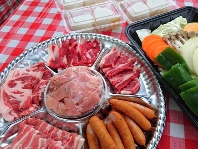 - 炭(1kg)500円、薪500円、BBQ食材セット(1人前)1800円