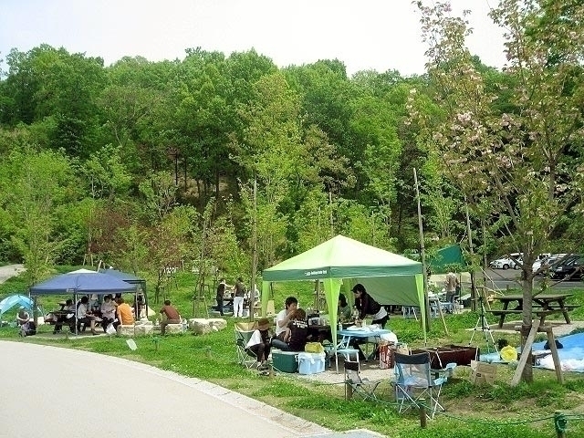 四季折々の花が咲く公園でバーベキュー
