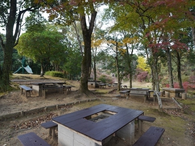 - バーベキュー広場テーブル(6~8名用・コンロ・イス・アミ・火バサミ・着火剤・炭付き)1卓1100円(18卓あり)
