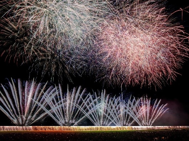 足利花火大会は、1903(明治36)年に創始され、今年で122年、第109回を迎える。長年の伝統と歴史に加え、市の中心部で行われる本大会は、関東地域でも屈指の花火大会として知られ、毎年多くの観覧者が関東一円から集まり、足利が最も活気に満ちた一日となる。約2万発の花火の打上げを予定しており、大玉の同時打上げやワイドスターマイン等が夜空を彩る。特にクライマックスの「大ナイアガラ」は圧巻。