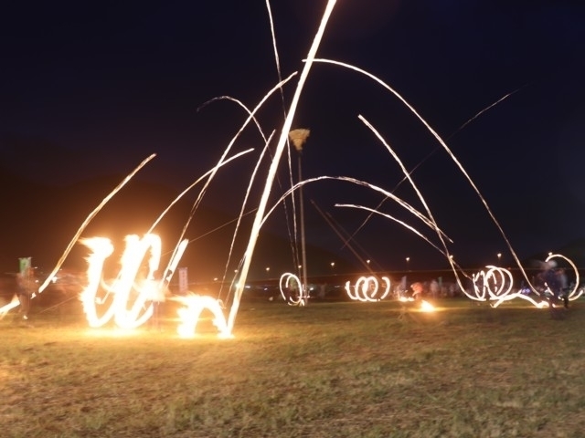 炎が夏の夜空を赤く照らし荘厳な雰囲気に包まれる