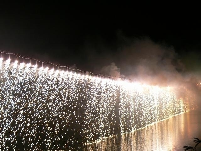 夏の夜空を彩る塩尻の風物詩。定番人気花火の1つであるスターマインは、夜空に色とりどりの大輪の花を咲かせ、見ごたえ十分だ。この花火大会では通常のスターマインをはじめ、観客の目の前で炸裂する迫力の水中スターマインが見られる。水面ギリギリで打上げられるため、水上に巨大な扇形をつくるのが見どころ。水面に映し出される花火が1つの円となり、華麗で幻想的な空間が演出される。そのほか、願い事やお祝いの気持ちが込められたメモリアル花火や、水面にまばゆい光が流れ落ちるナイアガラなどにも注目だ。