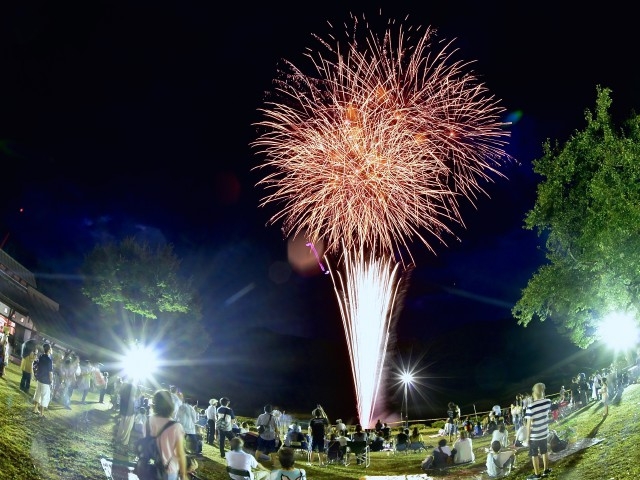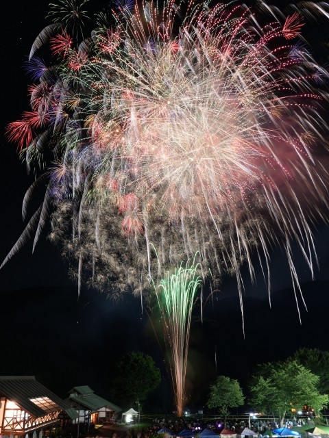 JR飛騨古川駅から車で30分の場所にある飛騨市宮川町は、美しい棚田の風景が残る絵に描いたような日本の原風景。バックには、飛騨の山々と豊富な水が流れる川が広がり、大自然に広がる花火の美しさは格別。花火に対して強い情熱を持った地元メンバーたちが煙火花火の資格を取って自ら打ち上げる。手作りの花火大会ながら、約600発、最大4号玉の情熱の花火が打ち上がる。