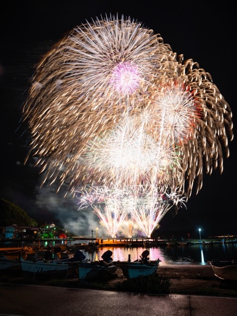 夏の風物詩ともいえる花火大会。お盆期間中に開催されるため、島民はもちろんのこと帰省や観光の方も楽しむことができる。花火との距離が近く、迫力満点!