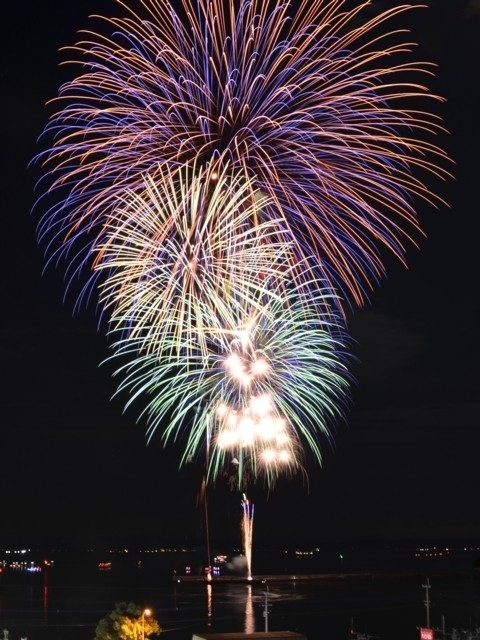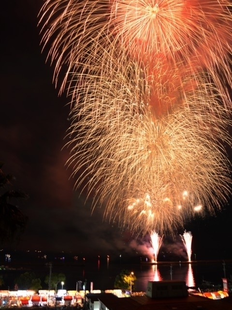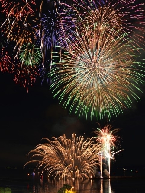 島原温泉ガマダス花火大会は、1993(平成5)年に雲仙普賢岳噴火災害の復興を祈願し始められ、今では島原の夏の風物詩として定着し、県内外の多くの観光客で賑わう一大イベントである。今回で31回目を迎える本大会は、スターマインや15号玉、音楽花火など約2000発、約1時間に及ぶ連続打上げは圧巻。島原港前の国道251号は19:00~22:00までの間交通規制で歩行者天国となり、露店80軒が並び大いに賑わう。