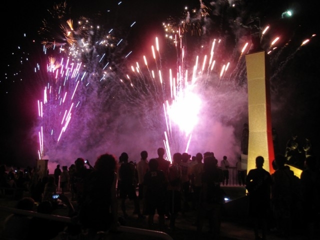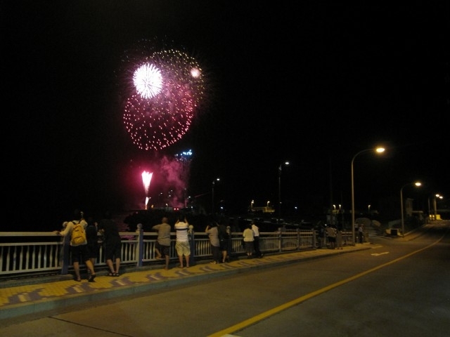 伊豆諸島のほぼ中間に位置する、白い砂浜と入り江が美しい神津島の花火大会。透明度が高く、マリンレジャーのメインスポットでもある前浜海岸の右手、太平洋に突き出た桟橋から打上げられる。周囲には高い建物などが皆無で、視界をさえぎるものがない。夕日の沈んだコバルトブルーの水面上に色とりどりの花が咲き乱れ、夏休みに訪れた海水浴客から歓声があがる。