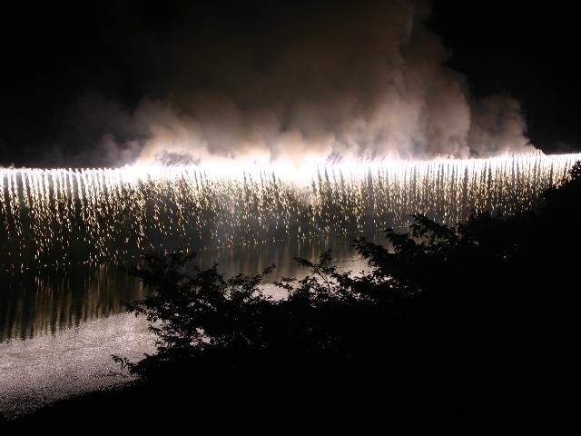日本のほぼ真ん中、新城市の中央を流れる豊川。その両岸に広がる桜淵公園で開催される花火大会。山間部というロケーションのため、花火の爆発音が谷間に大反響するのが圧巻だ。10号玉(予定)やスターマインなどの大玉が打上げられると、体が揺さぶられるほどの迫力を感じる。クライマックス前に行われる豊川に架かる幅150mの銀滝と大スターマインは、流れ落ちる光の滝が川面に反射して実に幻想的。自然が生み出す迫力、漆黒の夜空に咲く大輪の花、涼を感じさせる川音の見事なまでのハーモニーを堪能したい。