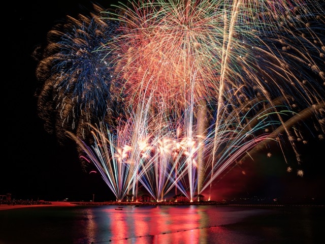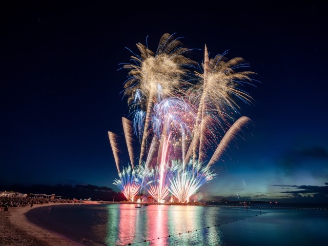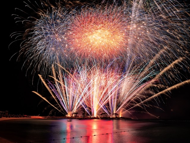 「海洋博公園 サマーフェスティバル 2025」の一部として開催される夏の一大イベント。会場の海洋博公園は沖縄本島北部の本部町にある国営公園。人気の沖縄美ら海水族館をはじめ、様々な施設があり、1日中楽しめる観光スポットだ。目前に広がる海と沖合いに浮かぶ伊江島の眺めがとても美しい。エメラルドビーチから打上がる約1万発の見ごたえある花火を予定。最高に盛り上がる沖縄の夏を熱く楽しみたい。