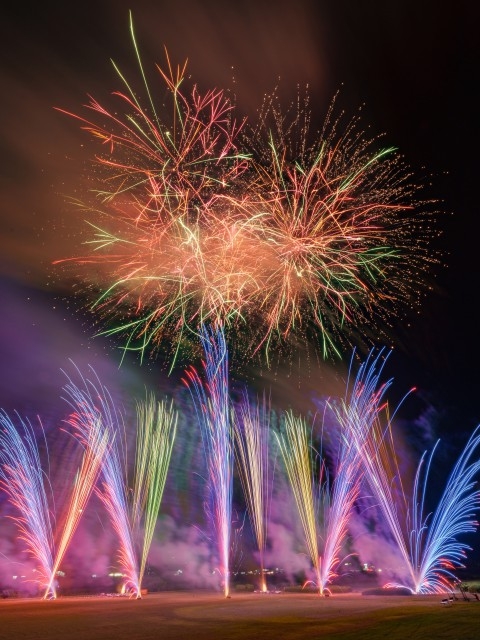 打上花火数約2000発。趣向を凝らした仕掛花火が龍野の夜空を鮮やかに彩る。例年は多くの露店が出店し、特設ステージでのパフォーマンスなど、多くの人で賑わう。