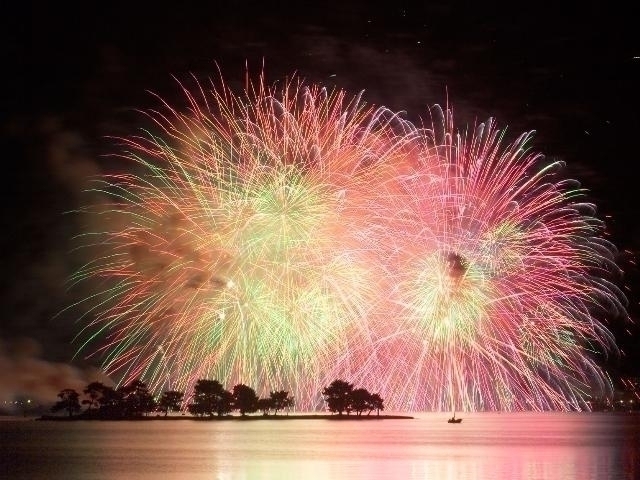 宍道湖の美しい湖面を活かした、西日本最大級の花火大会。湖上から打上げられる連続斜め打ちやスターマイン、尺玉連発など、さまざまなプログラムを予定している。花火は4台の船を使い、広範囲にダイナミックに打上げられる。また、ドローンによる湖上でのショーも行われ、夜空を彩る演出がより一層華やかに。