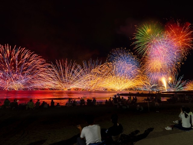 若狭高浜の夏の風物詩として毎年多くの観客が訪れる「若狭高浜花火大会」。町政70周年を記念して、今年の花火は全てにおいてレベルアップ!8月1日の若狭高浜花火大会の打上げ花火7000発に加えて、ドローンショーも行われる。7月19日~8月23日の毎週土曜に行われるミニ花火大会(計6回)も各700発!透明で綺麗な海で海水浴を楽しんだ後は、ゆったりと座って花火を楽しもう。