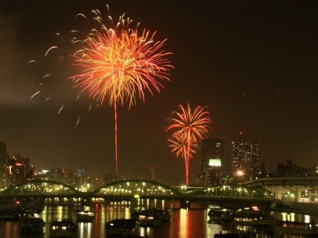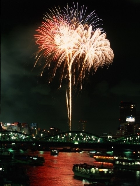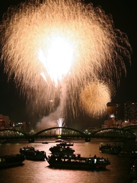 日本の花火大会の代名詞のような存在の花火大会。会場は2ヶ所。第1会場では花火コンクールが行われ、様々な芸術作品が堪能できる。第2会場は創作花火やスターマインなどが見どころだ。花火コンクールは、両国花火ゆかりの業者と、国内の代表的な花火大会において優秀な成績をおさめた業者で渾身の力作を競い合う。他の花火と異なり、街中を歩きながら観賞する花火大会となるためマナーを守り、到着時に帰りの切符を準備するなど、混雑の緩和に協力しよう。