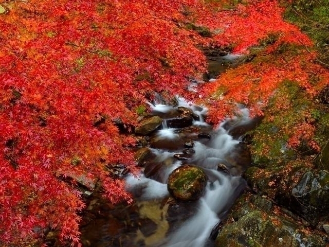 名所と呼ばれる美しい紅葉と滝の壮観な眺め