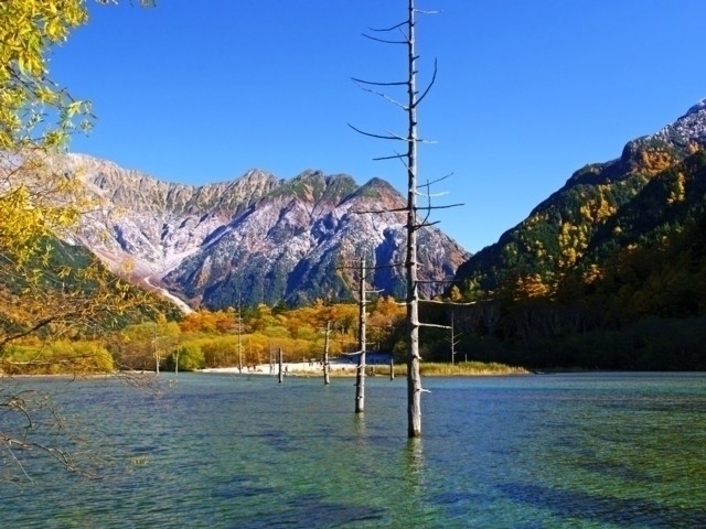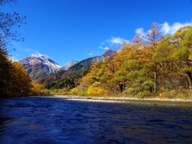 日本の代表的山岳景勝地として、多くの人が訪れる上高地。梓川沿いに遊歩道が整備され、大正池、河童橋、明神池とのんびり散策が楽しめる。とくに秋のカラマツの紅葉がすばらしく、多くのハイカーでにぎわう。自然保護のため、マイカーでのアクセスは不可。