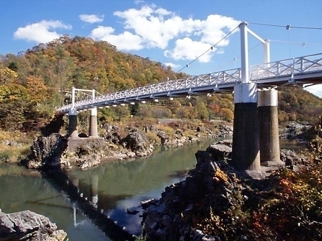 「カムイコタン」とはアイヌ語で「神の住む場所」の意味。旭川市街から石狩川を10kmほど下った所にあり、アイヌ民族の伝説で魔神と英雄神の激闘があったとされる地。奇岩・巨岩が横たわる迫力ある峡谷が美しく彩られる眺めは一見の価値あり。旭川を代表するパワースポットで、道北有数の景勝地がナナカマド、ミズナラ、カエデなどで美しく彩られた眺めはまさに神秘的。