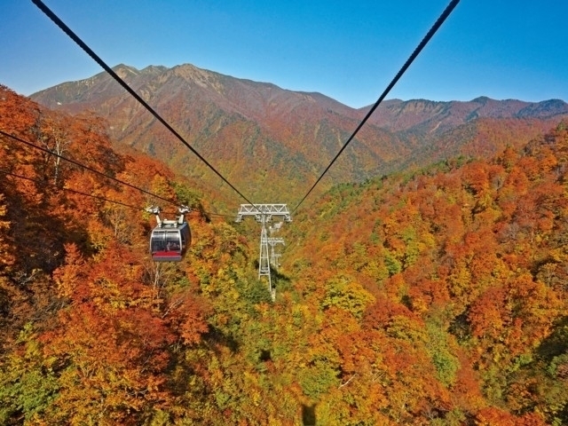 谷川岳中腹の標高約1300mにある台地・天神平からは、目の前の山頂と雄大なパノラマが一望できる。ロープウェイで上がるにつれて、山肌の色合いが変化していくのがわかる。山麓にある一大観光名所の一ノ倉沢もぜひ立ち寄りたい。日本三大岩場の断崖絶壁と紅葉の眺めはここならではだ。