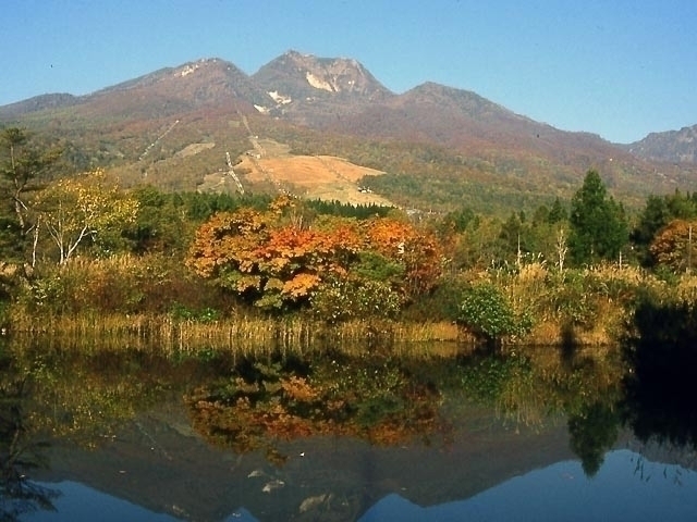 妙高高原・池の平温泉にある「いもり池」は、実際にイモリが多く生息していたため、この名前がつけられたという。池の周囲にはおよそ500mの遊歩道があり、秋色に染まった妙高山の景色を眺めながらの散策が楽しめる。そのほかにも数多くのハイキングコースが整備され、ゆっくり紅葉が楽しめる。