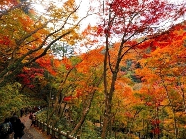 落差約33mの「箕面大滝」でおなじみの公園。古くから紅葉の名所として知られた景勝地で、毎年多くの観光客が訪れる。特に「日本の滝百選」にも選ばれた荘厳な大滝を彩る紅葉は見るものを圧倒する。