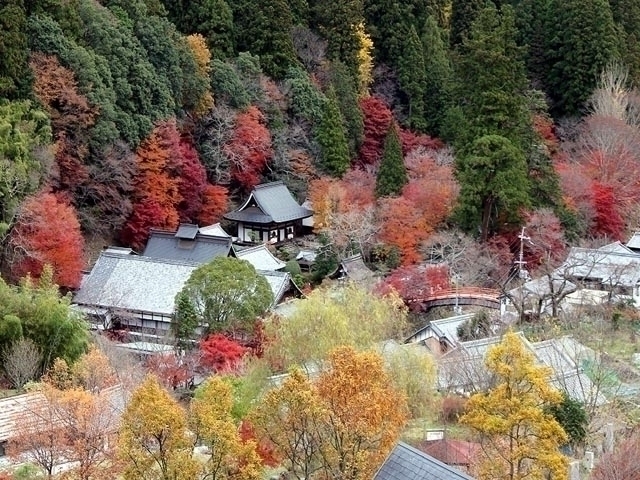 「女人高野」の別名で知られる古刹。五重塔、重要文化財の弥勒堂などが建ち並び、秋にはモミジの紅葉が鮮やかにその背景を飾る。特に本堂や鎧坂にかかる紅葉は格別だ。