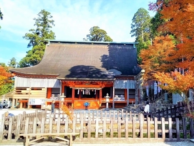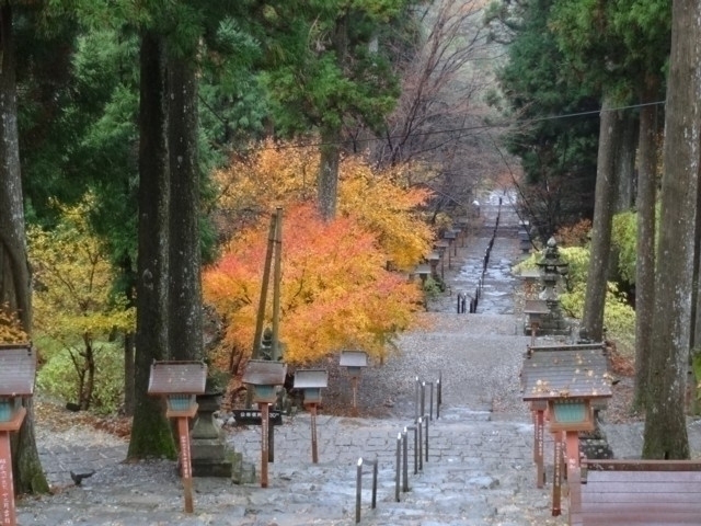 英彦山はかつて修験の山として栄えた霊山。英彦山神宮の銅の鳥居をくぐり、石段を登ると奉幣殿、下宮がある。山頂の上宮まで続く3kmほどの参道があり、春は新緑、秋は紅葉が美しい。11月上旬に上宮周辺のモミジが色づき始め、麓へゆっくりと紅葉が移り進んでいく。奉幣殿へはスロープカーで上れるのもうれしい。(2022年8月から英彦山神宮上宮修復工事により登山道の通行が一部規制あり)