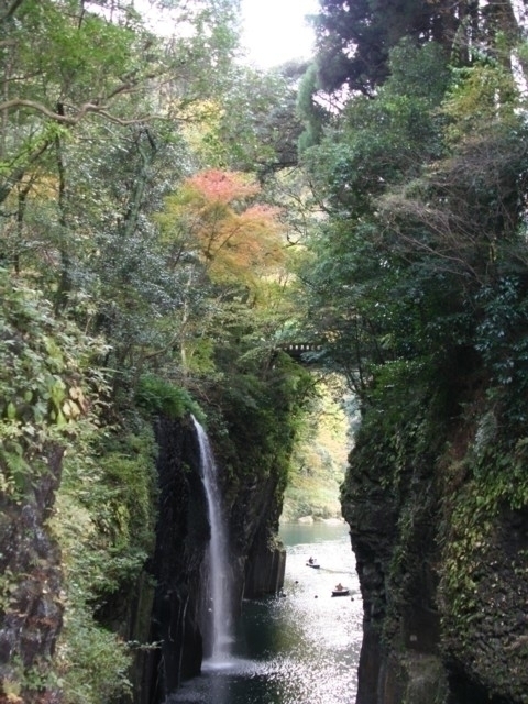 高さ約80mから100mの絶壁が7kmにわたって続き、国の名勝・天然記念物に指定されている峡谷。遊歩道や貸しボートで紅葉を楽しむことができ、ボートでは「日本の滝百選」に選ばれた「真名井の滝」の滝壷から迫力ある滝と紅葉を見ることもできる。
