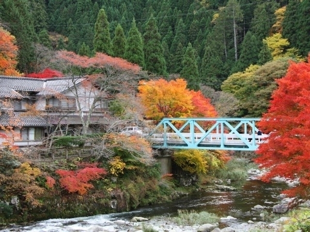 - JR津山線津山駅から中鉄北部バス奥津温泉行きで57分、小畑下車、徒歩10分