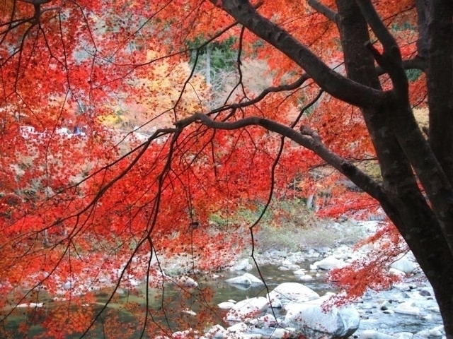 全国的に知られた景勝地。渓流沿いに約800mの遊歩道があり、奥津渓八景といわれる自然美を満喫できる。澄み切った水が流れる渓谷の両側が、モミジなどの鮮やかな紅葉に彩られる秋の風景は格別。ライトアップ期間中には奥津渓を中心に、様々な催し物が行われ、多くの人でにぎわう。