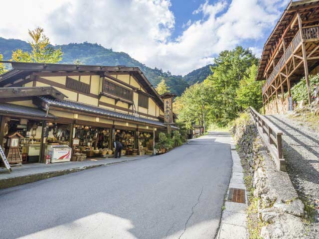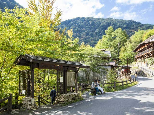 乗鞍岳の東側山腹、樹林に囲まれた湯川渓谷にある秘境の温泉。明治から昭和にかけては多くの文人・墨客に愛され、中里介山が『大菩薩峠』の執筆のために逗留した湯元斎藤旅館をはじめ、木造の風情ある宿が建ち並ぶ。