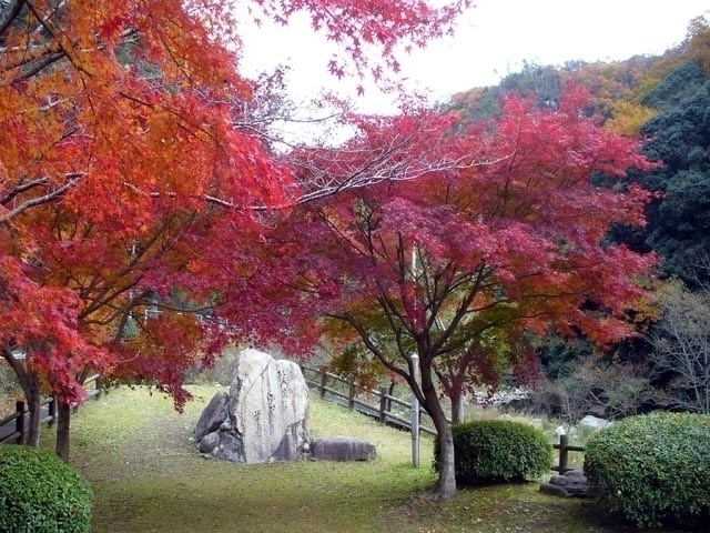 江戸時代後期の日本を代表する漢学者、頼山陽に「安芸の耶馬溪」と絶賛された深山峡は、夫婦岩や猿岩などの奇岩が連なる。切り立った絶壁は、紅葉で赤や黄色に染まり、静かな川面とのコントラストが美しい。