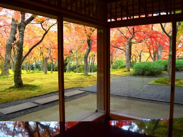 芦ノ湖からゆっくりと山を降りてくる箱根の紅葉。時期によって微妙に見どころは変わってくるが、箱根有数の名所として知られているのが強羅公園隣の箱根美術館だ。特に、茶室から眺める日本庭園は200本以上のモミジが真っ赤に色づき、思わず息をのむほどの景観を見せている。