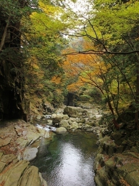 西日本の最高峰石鎚山の南麓に広がる四国最大の渓谷。見渡す限りの大樹海、いたるところから突き出した断崖、滝、奇岩など変化に富んだ見事な自然美が広がる。秋にはカエデの紅葉と清流が織りなす錦絵のような光景が楽しめる。