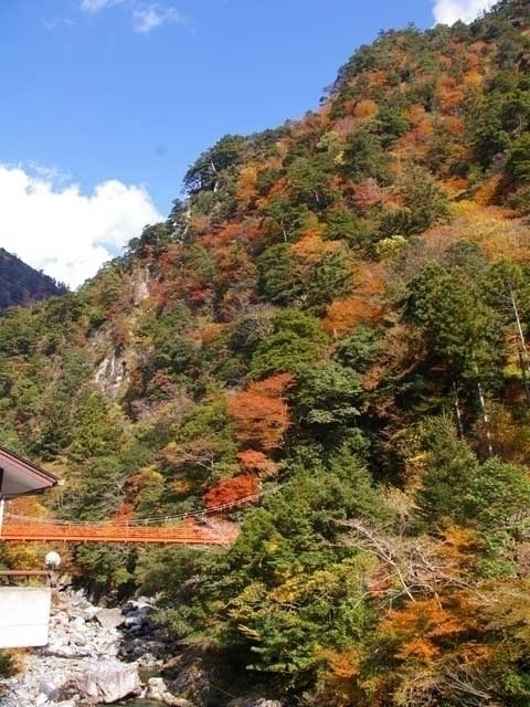 岸壁がそそり立つ千仞峡が錦に染まる