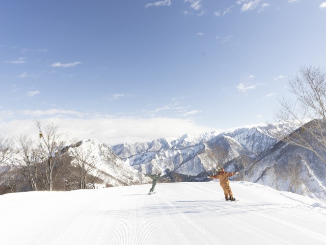 関越自動車道湯沢ICから約3分とアクセス抜群!平均斜度が緩く初心者でもロングランが可能。「GROUND BASE」内の入浴施設「神の湯」には、大浴場・露天風呂・サウナがあり、アフタースキーも充実!