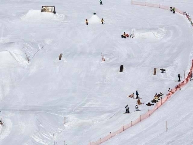 白山のパノラマを望み、大きな標高差と滑りごたえのあるコースで、中・上級者を魅了している。キッカー、ボックスなどアイテムも充実。手頃な温泉&宿泊施設もある。