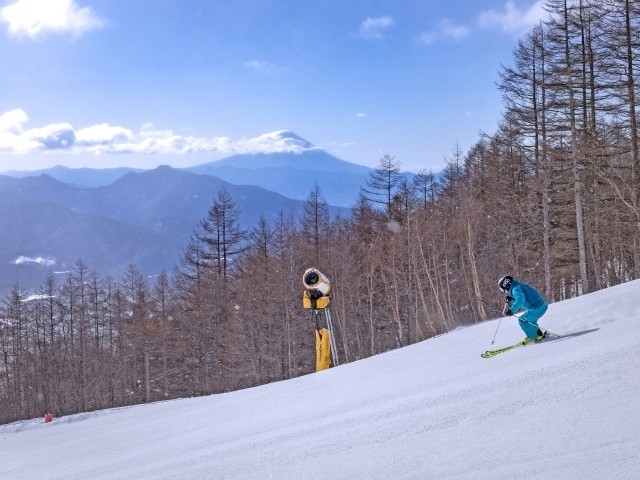 スキー場下部には清里高原の森が広がり、奥には遙か富士山までも望む眺望・環境が素晴らしい。ゲレンデは中斜面を基本とした構成で、晴天の下、カービングを楽しみたい。