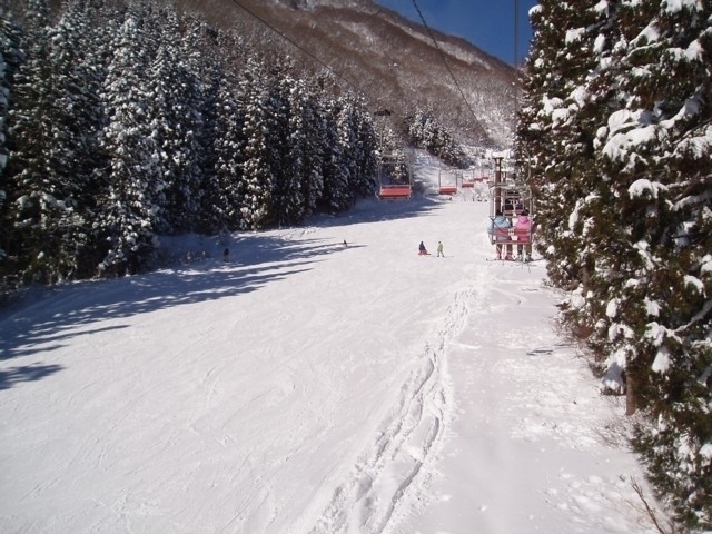 麓には並列するように中・緩斜面、そして奥に大きな未圧雪バーンを持ったスキー場。隣接する白馬コルチナスキー場とも行き来は可能で、ベースにはシンプルなホテルもある。