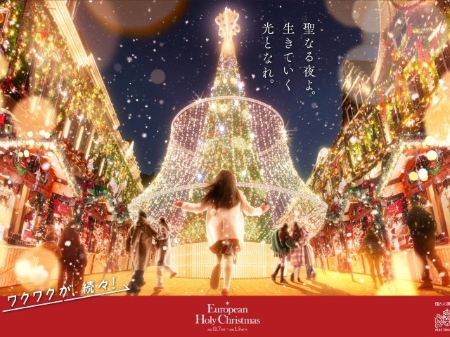 本物のヨーロッパの街並みが、360度クリスマスオーナメントに包まれる「クリスマススクエア」が今年も登場し、無数の光とクリスタルが重なり圧倒的な輝きを放つ、日本初の「グランド・シャンデリアツリー」が新たに登場。ほか、毎晩圧巻のナイトショーを届ける「メロディー・オブ・クリスマス」や、沢山の屋台が一堂に会する「クリスマスマーケット」を実施する。