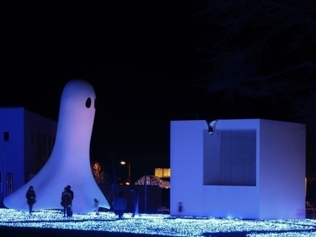 冬の十和田市官庁街通りをイルミネーションで彩る「アーツ・トワダ ウインターイルミネーション」。十和田市現代美術館アート広場に青色LEDを設置し、広場全体を幻想的に演出。まるで青いじゅうたんが敷き詰められたような空間でアート作品が光に包まれ、昼間とはひと味違った表情を見せてくれる。また、十和田市現代美術館の建物もライトアップされ、点灯初日は点灯式を開催予定。