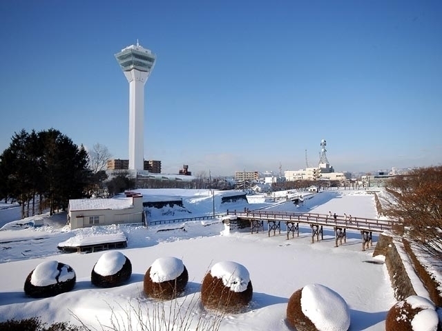 箱館戦争の舞台、五稜郭の堀の外側に建つ高さ107mの展望台(展望台の高さは90m)。眼下に星型の城郭が見られるほか、函館山、函館の市街地などのすばらしい眺めが一望できる。元旦は初日の出観賞のために早朝から特別展望が行われる。
