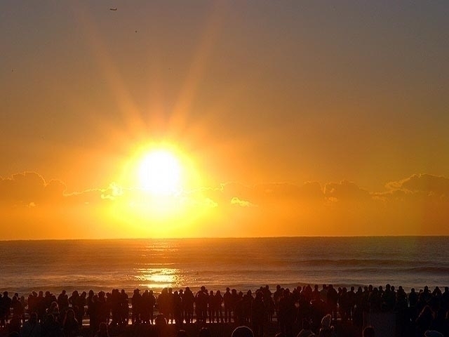 刑部岬から太東岬まで約66kmに及ぶ日本で2番目に長い砂浜、九十九里浜の中心に位置する片貝中央海岸。雄大な水平線からゆっくりと昇る初日の出が、空と海を優しく包み込むようにオレンジ色に染め上げる光景を、砂浜から拝むことができる。