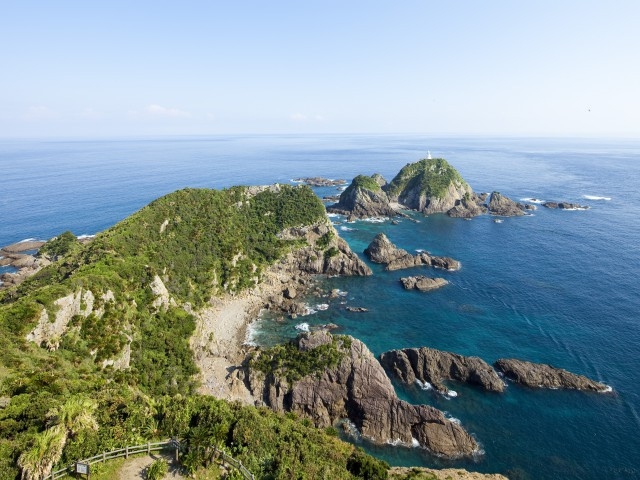 本土最南端に位置し、ハイビスカスなどの亜熱帯植物が生い茂り、まるで陸続きでたどり着いた南の島のような佐多岬。太平洋、東シナ海、錦江湾に面し、種子島などの島々や開聞岳を一望する絶好の初日の出スポットだ。